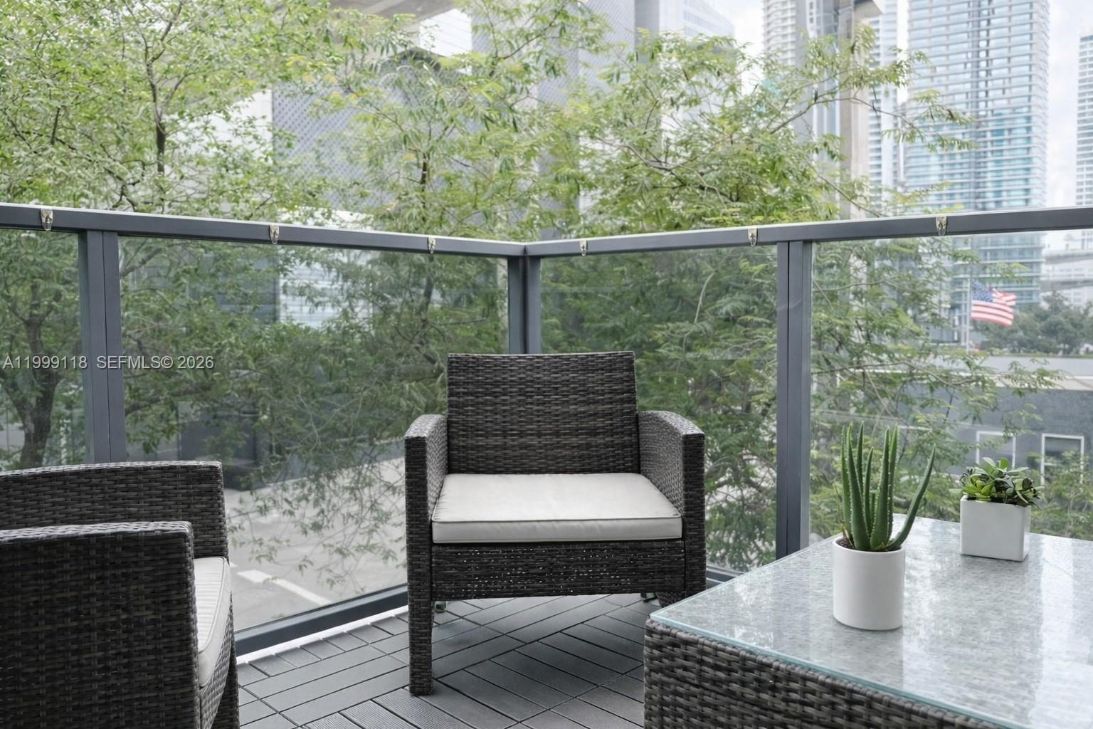 Beautifully remodeled 2BR+den residence at MyBrickell, with owner using the den as a 3rd bedroom, and 2 full baths. Located on the 3rd floor, this well-designed unit offers 1,116 SF, porcelain flooring throughout, impact windows and doors, in-unit washer/dryer, a spacious living and dining area, and a beautifully updated kitchen. Private balcony feels peaceful and relaxed, surrounded by trees and city views. Includes 1 assigned parking space. Building amenities include pool, gym, business center, front desk security, and guest parking. Airbnb allowed with 28-night minimum. Prime location in the heart of Miami’s Financial District, just 1 block from Brickell City Centre and 1 block from Metromover/Metrorail, with restaurants and everyday conveniences nearby. Furniture negotiable. Information is deemed reliable but not guaranteed and subject to errors, omissions, or changes without notice. Buyer and buyer’s agent should independently verify all information, including square footage, rental restrictions, HOA/building policies, room use, and any applicable permits or approvals.