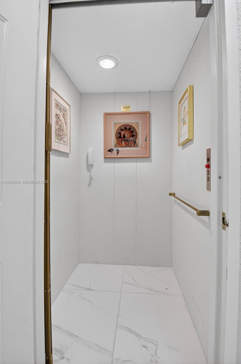 BEAUTIFULLY UPDATED GOLF & WATER VIEWS! Rare opportunity to own a move in ready spacious Penthouse unit residence w/ amazing views & nearly 2,000 sq feet of living space. Easy access up or downstairs with a private recently upgraded elevator. Bright & inviting condo w/ desirable split bedroom floor plan, generous living and dining areas, plus eat in kitchen and large windows showcasing tranquil golf course views & upgraded full sized washer / dryer & tons of storge everywhere. Both bathrooms beautifully upgraded w/ frameless shower door and separate large tub. Expansive primary suite w/ golf & water views, sitting area & custom walk-in closet. Attached private garage, ample storage, and a beautifully updated open concept kitchen w/ shaker style cabinets, quartz counters, tile backsplash, additional storage / buffet area & stainless appliances. Enjoy peaceful surroundings and scenic views from the main living areas while living in a well-maintained, gated community offering security and access to clubhouse amenities w/ additional optional membership. Incredibly spacious layout & opportunity to build an additional bedroom or office from the family room space, plus enclosed Florida Room for additional den / office space, amazing volume ceilings & custom wrought iron & wood banister makes you feel like you're in a luxury home. With tons of upgrades and desirable setting, this condo presents an exceptional opportunity for comfortable living. X Flood Zone!