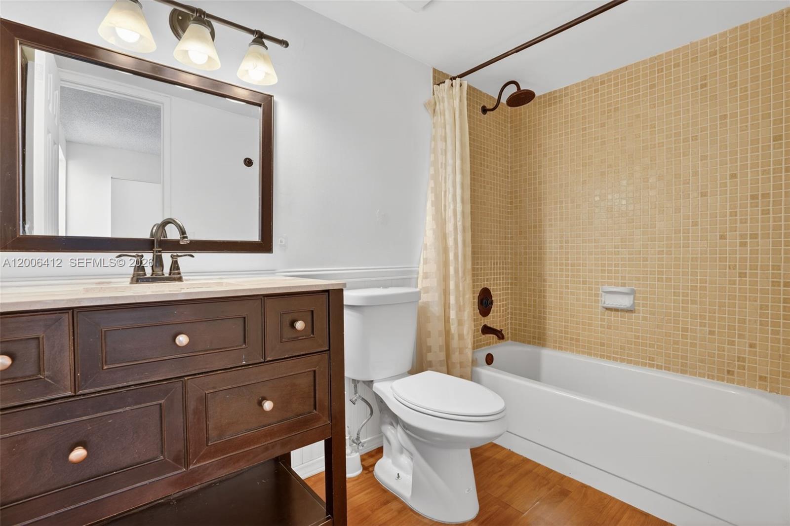 Beautifully updated 3-bedroom, 2-bath condo offering a spacious and airy layout with vaulted ceilings and wood floors throughout. Freshly painted and move-in ready, this home features hurricane impact windows, a new roof, and a newer A/C for peace of mind. Enjoy a well-maintained community with amenities including a pool, tennis courts, basketball court, and lots of guest parking. The unit includes two parking spaces—one assigned and an additional decal. Centrally located near major expressways, top shopping destinations, malls, and dining—this is convenience and comfort all in one!