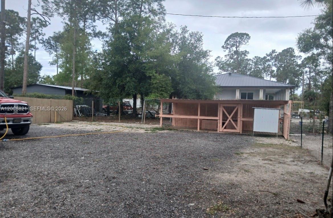 Discover the peaceful country life on this beautiful and cozy 1.25 acres property, remodeled 3 bed/2 bath, enclosed by fencing with an electric gate. The grounds boast beautiful mature oak trees, an animal pen with a separate section for goats, a chicken coop and ample open space to enjoy. Is a spacious double wide manufactured home featuring a custom 24x14 foot extension, creating a comfortable second living area, this includes hurricane impact resistant windows and doors, providing enhanced safety and energy efficiency, as well as high quality tinted windows. All interior walls have been renovated with drywall. High-efficiency mini-split air conditioning systems, the living room unit also features a heating function for cold weather. You can enjoy a raised wooden front deck complete with railings. Metal roofing provides superior durabilit y. The property has a private well with a brand new filtration system and a new pump turbine. The septic tank has been recently cleaned.The roof is brand new, installed in 2024. The foundation is also new, installed by specialized and qualified professionals,also includes new shed with permits. As an potential source of income for the buyer, an RV is included with the property; this unit can be rented, has 1 bed/1 bat, living area and kitchen. The seller is offering up to $15,000 to cover the buyer's closing costs! Rarely is such a special combination found on the current market. Schedule your private viewing today!