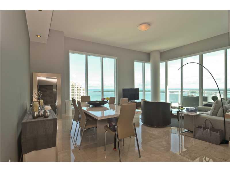 Miami's Urban Sanctuary!Impressive designer 4/4.5 w/smart technology. Private elevator to corner residence w/180 degrees of breathtaking water & city views. 12' ceiling, ledger stone foyer, flr to ceiling windows w/elec blinds. Marble flrs, top of line gr anite gourmet kitchen w/wine cooler, cappuc machine, walk-in custom closet. 3 pkg spaces, WiFi & same flr storage rm. Tennis, fitness cntr, resistance pools, racquetball. Island w/marketplace, bank, cleaners & playground.State of art bldg w/123 residences