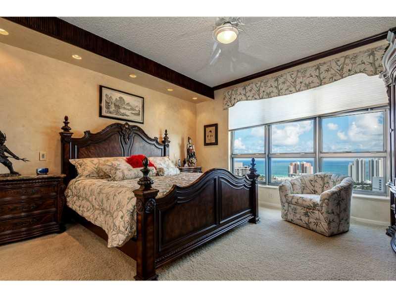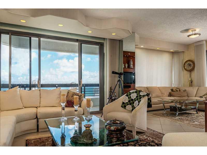 MAGNIFICENT OCEAN AND CITY VIEWS. SPECTACULAR WRAP-AROUND BALCONY, FEATURING PORCELAIN TILE FLOORING AND CARPET IN BEDROOMS. CONDO HIGHLIGHTS, GOURMET KIT W/ GRANITE COUNTER TOPS & WINDOW SILLS, WOOD CABINETS, WINE COOLER, PANTRY, AND UNDER CABINET LIGHT ING. BEDROOMS W/ BUILT-IN CLOSETS, OVERHEAD LIGHTING, AND CROWN MOLDING. BATHROOMS W/ UPDATED CABINETS/PULL OUTS. PROPERTY TO INCLUDE ACCORDION HURRICANE SHUTTERS, W/ GREAT AMENITIES SUCH AS A GYM, SAUNA, HEATED POOL, SPA, TENNIS COURTS AND MARINA.