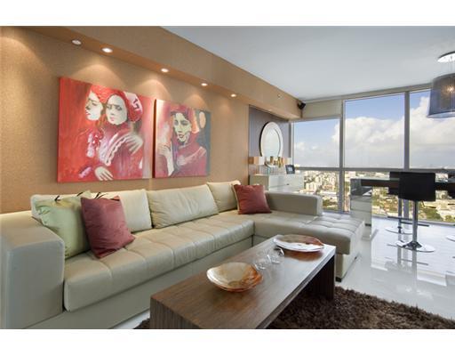 Icon South Beach-high floor. 1/1.5 apartment with panoramic views of Ocean, Bay and South Beach. Completely remodeled and upgraded with white porcelain floors, custom wood built-ins throughout the living room and finest mosaic in the bathroom. Stainless s teel appliances, custom made closets. High end amenities include 2 pools, restaurant, spa and gym. Furniture negotiable.