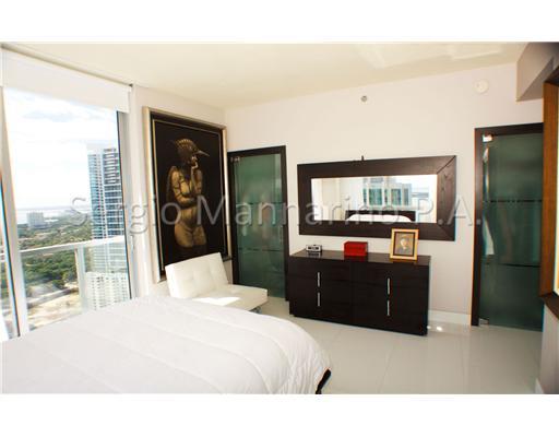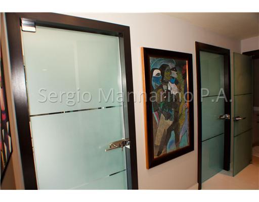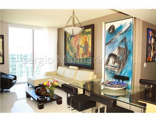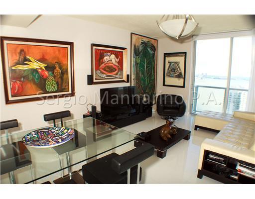 BEAUTIFUL CORNER UNIT WITH AMAZING PANORAMIC VIEWS TO OCEAN AND MIAMI SKYLINE. LOCATED ON THE 07 LINE OF THE BUILDING THIS CORNER UNIT OFFERS ONE OF THE BEST VIEWS ON THE BUILDING, 2 BED/2 BATH, SS APPLIANCES GRANITE COUNTER TOPS, CUSTOM WOOD CABINETRY, F LOOR TO CEILING GLASS WINDOWS, SS AND GLASS DINING TABLE ATTACHED TO THE KITCHEN COUNTER WITH 4 SS AND BLACK LEATHER CHAIRS - CURTAINS THROUGHOUT THE APARTMENT, BEAUTIFUL WHITE CRYSTAL FLOOR. ALL DOORS AT THE APARTMENT ARE MADE WITH GLASS PANELS.