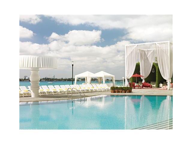 Direct bayfront unit! Located in fashionable South Beach overlooking Biscayne Bay, this turnkey unit offers spectacular views of Biscayne Bay, the Venetian Islands and gorgeous sunset views of downtown Miami. Owners enjoy all the privileges of this exclus ive hotel including access to the Sunset Lounge, Pool, fitness center, Aqua Spa, 24 hour room service, maid service and access to the marina. Walking distance to restaurants & Lincoln Road. No rental restrictions. 1100 West Ave Condo, Home of the Mondrian