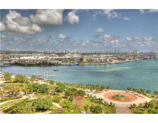 Largest unit in the building: a true home in the sky! 4 bedrooms, 4 full baths, 1000 s/f wraparound terrace, views of Biscayne Bay, the Atlantic & Downtown Miami. A photographer's dream: South, East & West exposure. Italian Travertine & wood floors. Enter tain in style: gourmet kitchen, 2 Bosch ovens + 2 dishwashers, granite countertops. 2 parking spots. Enjoy amenities of a modern landmark building: huge pool, cabanas, gym, Pilates, sauna & skylobby w/ views of Bayfront Park & a vibrant city!