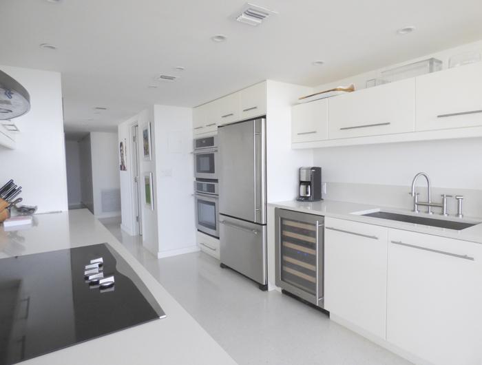 Modern, sleek, chic corner. Fabulous panoramic views of Bay, and South Beach, both day and night from all rooms and large balcony. This unit was totally renovated-- semi-open kitchen with Jennair and Bosch appliances, quartz counters and built-in seating area. Other features include: Terrazzo floors, spacious bedrooms, beautiful marble master bath w/double sinks, soaking tub and shower, large closets. Costa Brava is a Full-service building: concierge, valet, cov. parking