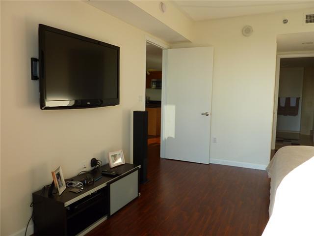Immaculant, corner 2 bed/2 bath w/ 1,256 square feet of interior space, wood flooring throughout the living areas, marble flooring in the master bath, stainless steel appliances, stackable washer/dryer and a large wrap-around balcony with access from both bedrooms and living room. The spacious master bedroom has two walk-in closets and enough room for a king-sized bed. Master bath has a Jacuzzi tub & separate glass-enclosed shower. HOA fees = $862.47/mo. Amenities include pool, gym, spa, valet, club room.