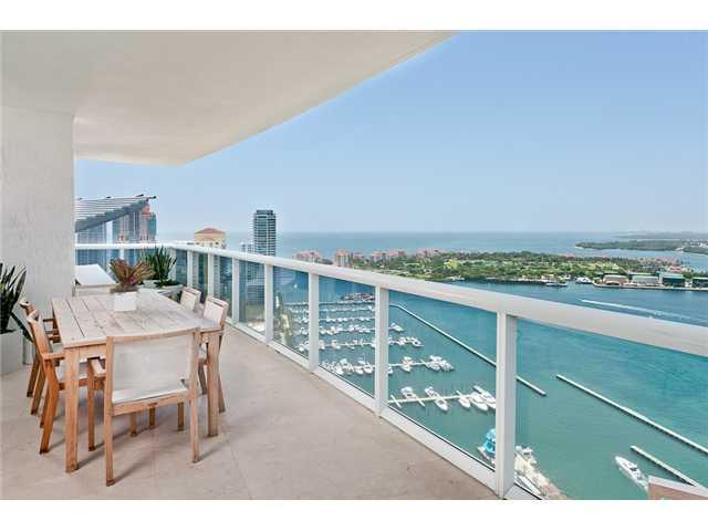 Immaculately renovated flow through penthouse offers nearly 360 degree panoramic views of the ocean, bay, South Beach, Fisher Island and Miami skyline from 2 oversized private terraces. Designer finishes include imported Italian hand crafted oak flooring, Blue Macauba quartzite island, custom teak cabinetry, and custom Bergamo fabrics. This 3 bedroom masterpiece boasts a private elevator foyer and gourmet kitchen. Complete with state of the art Creston for audio, video and solar shade control.