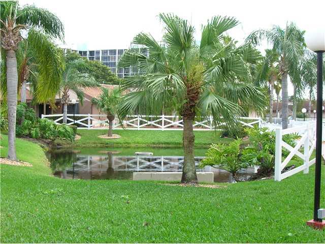 Updated & open; '05 gourmet Euro kitch-wood cabs, granite countrs-backsplash, under-cab lites, slider shelves/drawers; large lite open liv.rm/dr-volume ceilng. Mstr bth: newer shower&vanity; neutral tile,; crpt in bdrms; abundant closets/storage; split bd rms, skylites w/vaulted wood ceilngs for volume/space; fullsize w/d. Private fenced patio, hurr.shuttrs, lovely landscaping. Wonderful community - dock avail, tennis, pool++ Near Beach, Gulfstream, shopping, dining, airports. As-is; inspections welcome.