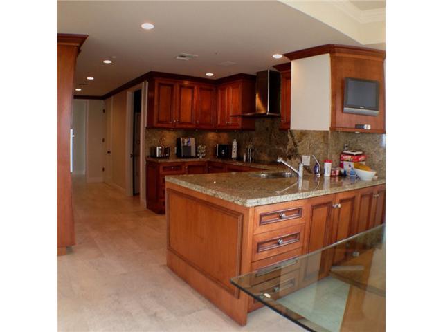 Renovated Oceanside 3br, 3.5Bath unit boasts huge wrap-around terrace, bright open floor plan. Built-out office niche boasts rich wood custom cabinetry. Completely renovated, marble floors, gorgeous luxurious master bath. Ready to move in. En-suite baths , lg galley kitchen features rich granite countertops, wood cabinetry & stainless steel appliances. Laundry rm built-out for comfort & convenience. Two parking spaces, 1 golf cart spc. Fisher Isl day school is ideal for young families w/ kids. EZ 2 show.