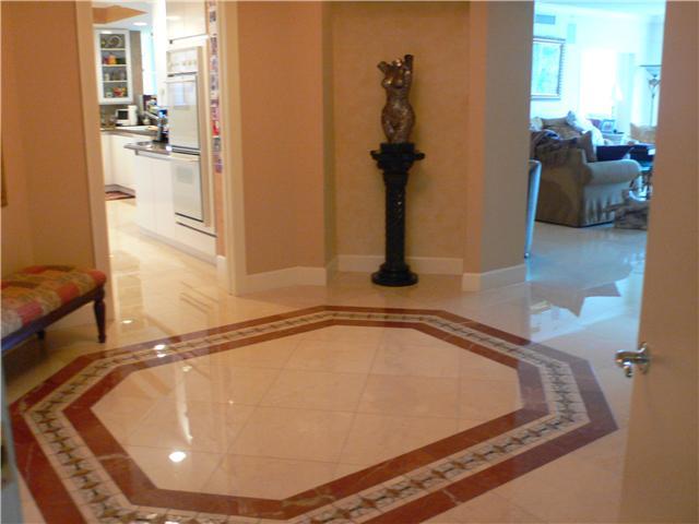 Fabulous NE corner 2 bed+den/3rd bedrm, 3.5 baths. Best line in the Best bldg at The Point. Private elevator w/ double foyer. Crema marfil marble flrs, carpet in bedrooms. Surround sound in the living rm, built in bar, electric shades in all rms, great kitchen with granite tops, built-in double oven w/microwave. 9 ft. ceilings w/ crown molding. Full laundry rm with sink. Built in custom closets thru-out. All marble baths. Wrap around terrace w/ view of the intercoastal and ocean. Hurricane shutters.