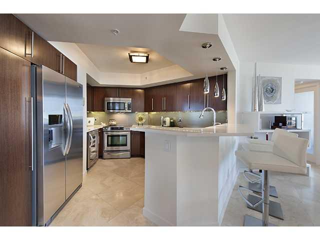 Beautifully renovated 2/2 at Sunset Harbour South complete with 2 assigned & deeded parking spaces! Just bring your toothbrush! Newly designed bathrooms provide luxury and functionality with dual sinks in the master and large walk-in showers. New kitch en boasts under cabinet lighting, large sink, new stainless steel appliances and wine cooler. Wood flooring in bedrooms. Double balcony accessible from living areas and bedrooms. Built-in sound system in living area. Frosted glass doors throughout.