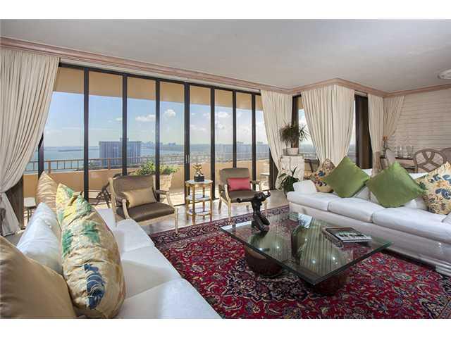 Spacious, Elegant Penthouse with Fabulous Panoramic Bay Views along with beautiful sunsets. 3 bedroom, 4.5 bathrooms is over 4000 sq. ft. plus terrace. Eat-in kitchen, wet bar, library/office. Huge master bedroom with 2 walk in closets, his and her bath rooms, 2 garage spots, valet service, tennis courts, gym and more!