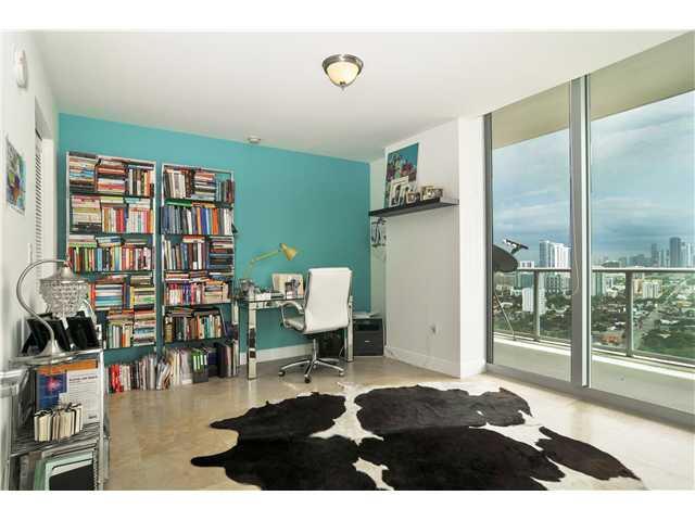 Spacious 2 bedroom, 2 bathroom with City and East views, large wrap-around balcony, high ceilings, travertine floors, European kitchen w/ ss appliances, washer and dryer in the unit, large walk-in closets, 24 hour concierge/ security, valet, lounge area, walking distance to restaurants, Target, cafes, design shops, minutes to the AA Arena, Performing Arts Center, South Beach, Downtown, Brickell, Airport.
