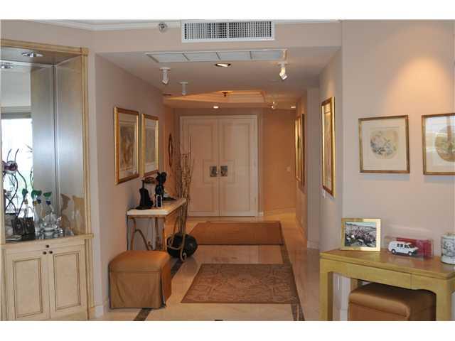 Use showing assist to schedule appointments. Atlantic floor plan with SE exposure, best view in Tower 2. Two full bedrooms, 2 1/2 baths. Features include private elevator entry, marble floors throughout, carpet in bedrooms, hurricane shutters, crown mould ings, customized closet interiors, large refrigerator with additional refrigerator/freezer in laundry room, customized lighting, window treatments, 2 parking spaces and more. Floor plan attached.