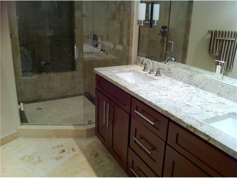 100% BRAND NEW RENOVATION..TOWER 500 DIRECT OCEAN & BAY VIEWS..ALL HIGHLY UPGRADED! LARGE STRIKING MARBLE FLOORS THROUGHOUT, SMOOTH CEILINGS..KITCHEN WITH RICH CHERRYWOOD CABINETS WITH POLISHED NICKLE HARDWARE, STAINLESS G.E. PROFILE KITCHEN, FRENCH DOOR FRIDGE + 2 FREEZERS, 2 CONVECTION OVENS, GRANITE COUNTERS, TILE BACKSPLASH. BATHS FEATURE GRANITE COUNTERS WITH DOUBLE SINKS & GLASS ENCLOSED SHOWERS IN BOTH. NEW AIR COND, STORM SHUTTERS, SOFFIT LIGHTING, CEILING FANS ++ FURN AVAIL SEPARATELY!!