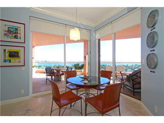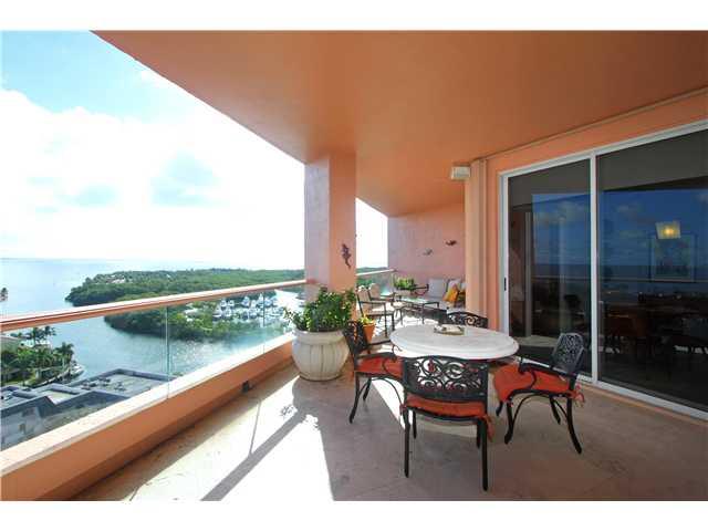 This beautifully appointed, seldom available "E" line on a high flr gives one breathtaking views of Biscayne Bay, Atlantic Ocean, Key Biscayne & downtown Miami from the minute one steps off the private elevator & into the expansive living & dining rms, on into the breakfast rm & kitchen. A balcony stretches out from all these rooms & creates large areas for dining & entertaining. Den converts to the 3rd bedroom. This very secure complex is well maintained & a favorite of many Miamians.