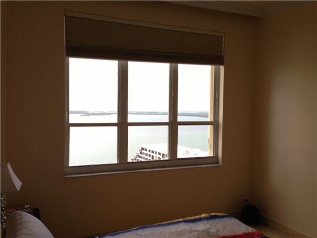 Panoramic Water View's from the moment you enter the unit. Floor plan is unique since Penthouse levels start on the 26th floor and unit offers higher than typical 10 foot ceilings. Unit has parking for 2 cars (tandem) and one assigned storage. Upgrades in clude new A/C installed in 2012, polished creme marfil marble floors throughout, blackouts in bedroom and roller shade in living room, newer stainless steel appliances, built in closets through out. The unit is rented until 04/10/2014 @ $2,000 per month