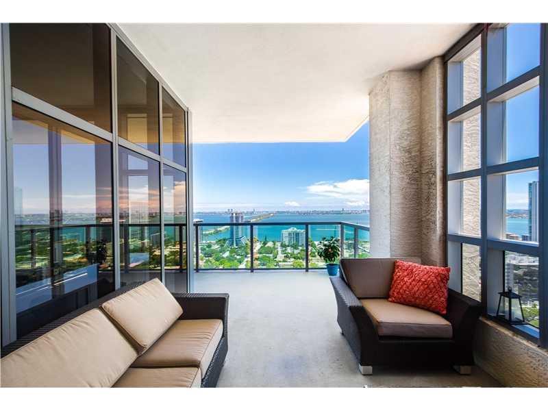If you are looking for the best views both day and night of Downtown Miami, Biscayne Bay, Atlantic Ocean and all of South Beach. This is the unit you want to purchase. Incredible wrap-around terrace. High ceilings, gray 24" X 24" tiles, granite countertop s, s/s appliances, full size washer dryer in unit. Custom black out binds in master and large walk-in closets. Split floor plan with a nice flow. Full amenity building. You will never lose your view from the new building next door. Its only 24-stories.