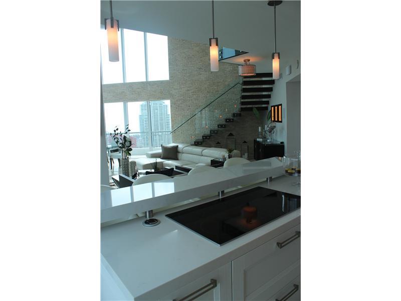 Stunning, custom built, "intelligent" home, 2 story corner unit, wraparound balcony w/ panoramic views of the Miami skyline, city & bay from every room. A one of a kind layout, not another one like it in the building. Owner spared no expenses in remodeli ng the entire unit with top of the line finishes & European appliances also relocating and converting the staircase into a "state of the art" masterpiece. For "before" pictures please go to "Attachments" section.