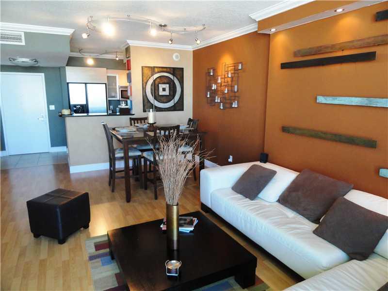 Gorgeous 1 bed/1 bath condo w/direct sky views of Biscayne Bay, Miami River, & Brickell Skyline.The kitchen boasts of sophisticated Italian cabinetry,stainless steel appliances & granite counter tops.The living areas have been updated w/new laminate wood floors, light fixtures, & updated shower in the bathroom w/marble bath tops.Custom closets in the master.Building offers superb amenities including 2 pools,jacuzzi,2 gyms,party rooms,business center, convenience store,24 hour valet,& concierge service.