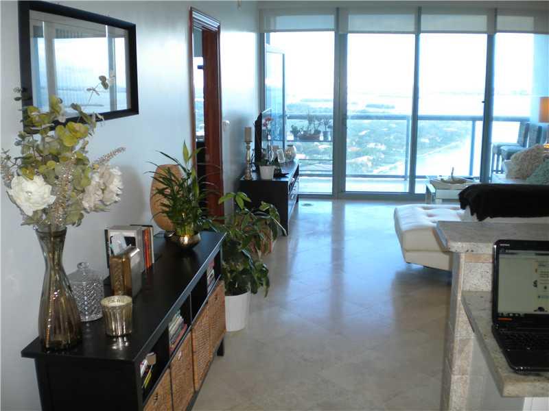 Beautiful upgraded unit w/ stunning bay views. 9' floor to ceiling windows w/ treatments. Granite, tumbled stone, S/S kitchen, marble floors. Master suite w/ dual sinks, over sized tub, walk-in closet, W/D. Meticulously maintained gorgeous full amenity bl dg: valet, concierge, large pool gym w/lap pool, hot tubs, saunas, bbq area, movie theater, billiards room, business center and storage. Large pet friendly. Walk to Midtown, Design District & minutes to South Beach, Brickell, I-95.