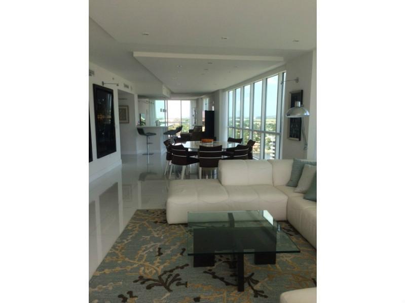 JUST BRING YOUR TOOTHBTUSH ... This is an outstanding unit with a 180 degree view of intracoastal and Ocean. Custom stone cabinets in kitchen, with all Viking appliances, wine cellar. Very unique custom lighting , a living room for sunrise another for su nsets. Condo is designed with stunning vistas from every room. Views are North, east, west -- each bedroom has balcony. Private elevator to personal foyer. Motorized shades included. A must see -- 40,000 sq.ft. of amenities.