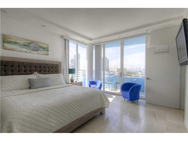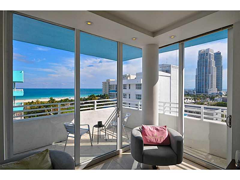 Top floor flow-through corner unit with direct ocean view in South of 5th Boutique 24-unit building designed by Arquitectonica. Close to everything, 1 block from beach! 2Bedrooms/2Bath, 3 balconies w/ 3 exposures: East, South, and West. Open kitchen w/Vik ing stove & stainless steel appliances. Washer & Dryer in unit. Watch ships come and go through the port hole windows. Investor's dream unit. Short term rentals & pets ok. Fully furnished, one assigned parking space included, 24 hour security in lobby.