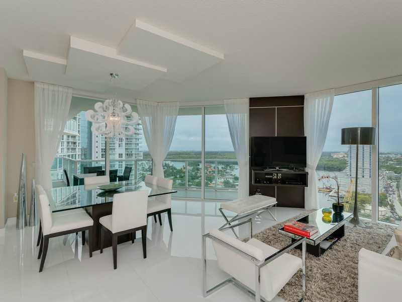 Luxuriously finished unit! Professional decorated fully furnished by interior designer. 3 bedrooms,2 bath embrace by floor to ceiling glass, overlooking Intercostal. All new appliances, white gorgeous flr, window treatments, state of the art kitchen, wal k-in closets & very large balcony. Great building across the beach. 5 star amenities: pool, gym, beach club service, events rm, concierge, valet, boutiques, coffee shop. Low maintenance. Close to Bal Harbor shops and Aventura mall. 20 min from MIA Airport