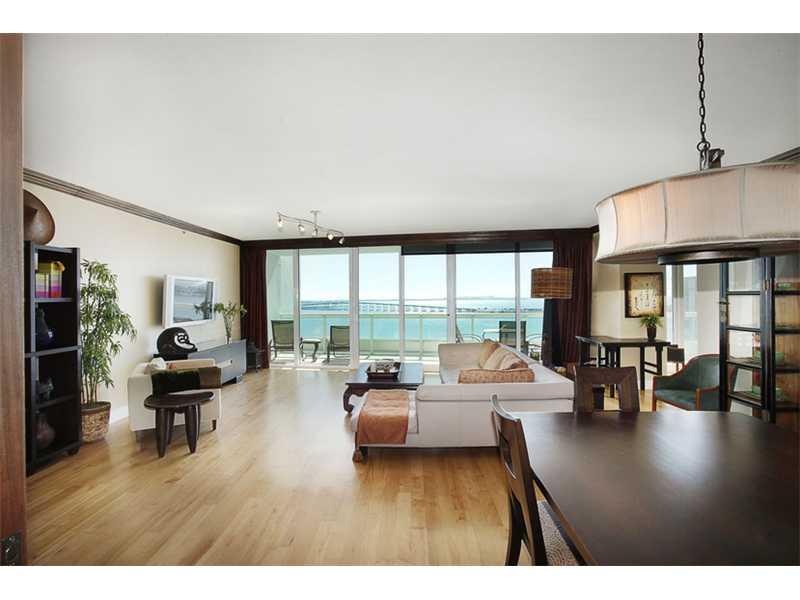 Wonderful mid-floor condo with stunning views of Biscayne Bay. This flow-through unit with east and west views has large balconies and a huge master suite. Enjoy the prestige of living in the best building in Brickell. Private elevator foyer opens to l arge living and family room. Breakfast nook off the kitchen opens to balcony with gorgeous water views. Electronic shades and hurricane shutters are two important upgrades. Beautiful hardwood floors and quartz counters in kitchen.