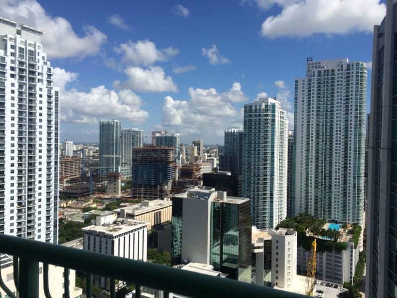 Stunning and spacious apartment on the 39th floor of this full service, luxury building. Highrise features a large balcony with beautiful bay and city views. Building offers jacuzzi, bay view pool, gym, aerobics room, concierge and valet parking. Unit is currently rented for $1850 until August 31,2015 Best location in the heart of Brickell between the Bay and Brickell Avenue.
