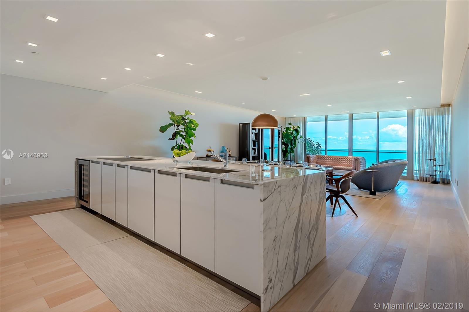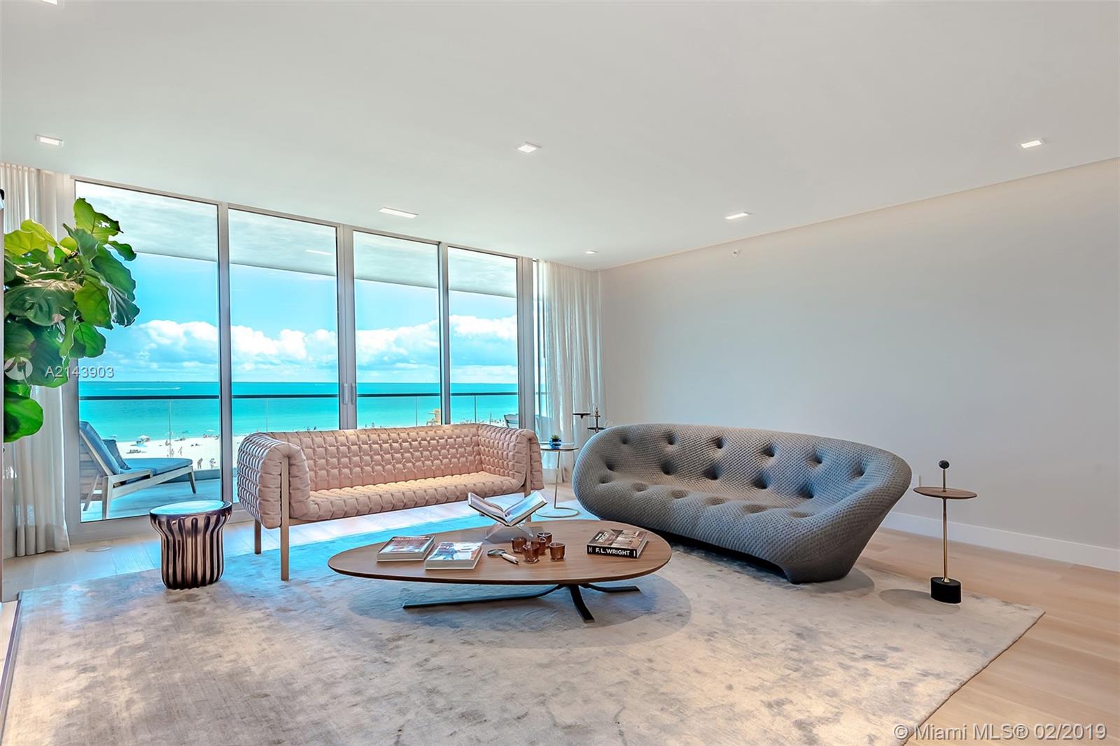 A private elevator opens up into this 4/4.5+Den. High ceilings, floor-to-ceiling glass & 10' deep terraces with direct ocean views. Open gourmet kitchen with sleek Poggenpohl cabinets, Gaggenau & Sub Zero appliances. Wood floors throughout. Signature amenities include beachfront infinity pool, library/lounge, fitness center, beach service, 24 hour valet, concierge and security. Architect: Enrique Norton.
