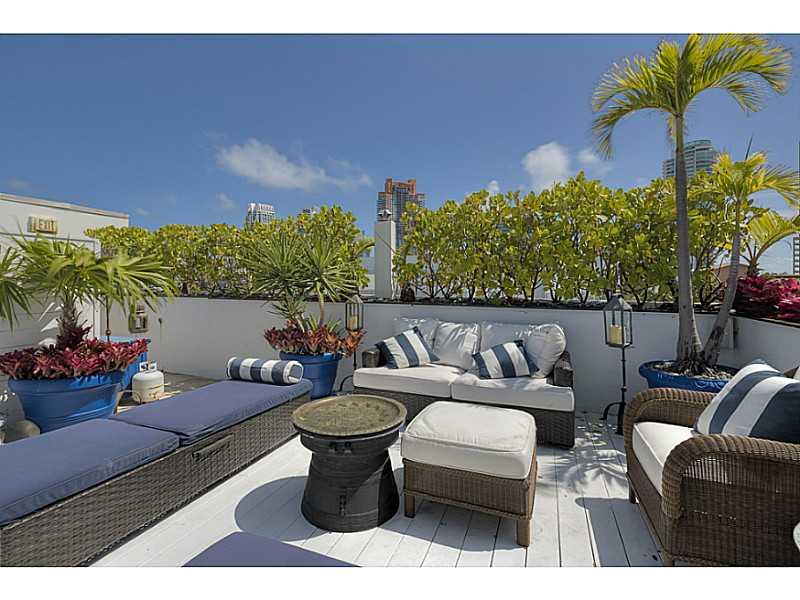 2 bedroom modern loft with direct access rooftop terrace. Extensively upgraded luxury with attention to every detail. Handcrafted finishes include custom kitchen, spa baths with claw foot tub and stone wall accents, wood floors, custom doors/molding & mor e. Balcony & private Ipe wood rooftop terrace, summer kitchen & panoramic views. Live in the sought after south of 5th Miami Beach neighborhood steps to the beach, shops, restaurants & park. Coveted 2 parking spaces. Easy to show.