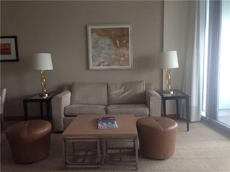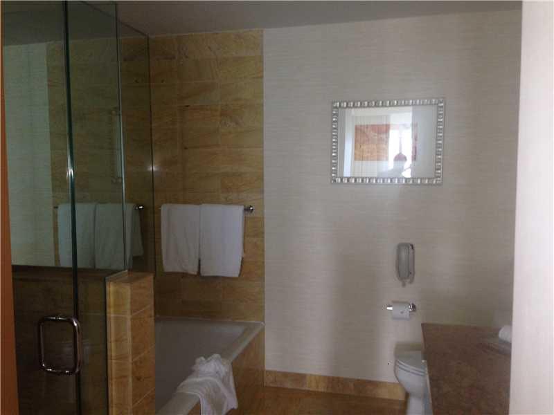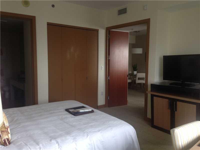 Condo-hotel unit on the 28th floor of the Conrad Hotel at Espirito Santo Plaza, a mixed-use bldg of glass and steel designed by Kahn Pederson Fox. Spacious 1/ 1.5 features wood floor in the foyer & kitchen; sisal-type carpet in the living room & bedroom. Aran kitchen cabinets and GE Whirlpool s/s appliances grace the open kitchen. Open balcony with amazing bay and city views. Five star hotel amenities.