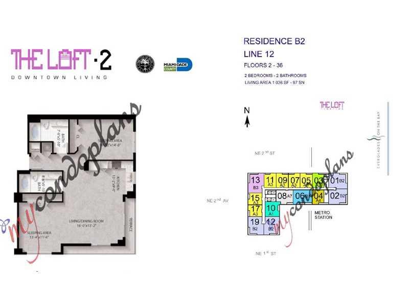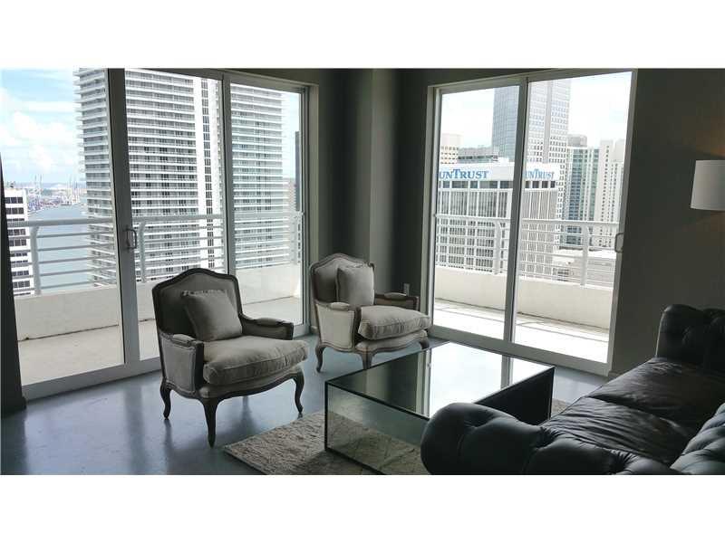 Trendy corner loft unit at the modern LOFT 2 building. This unit features fantastic 270 degree views of the city and Biscayne Bay; 10 ft. high ceilings; concrete floors; modern Italian kitchen w/stainless steel appliances; washer/dryer; hurricane window s; bathrooms with carrera marble counters; and 2nd bedroom is open to the living room. This building features a ground floor lap pool plus a pool & gym/sauna on the 36th Fl; 24hr security; secure parking. 2 minutes from the I-95 & close to South Beach.