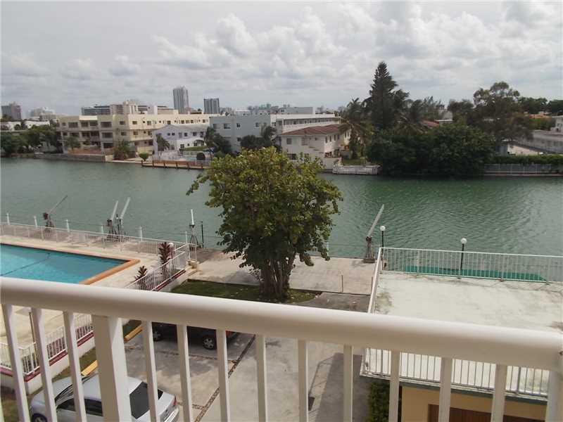 View of the canal and Miami Beach skyline. Unit is a hidden gem located across from Normandy Golf Course, walking distance to the beach and Normandy Park & Pool. Fully renovated in 2008 with hard wood floors, Italian fixtures throughout, Italian tile in k itchen, Elfa closets, 8 year old air conditioning system. Apartment is large, spacious and great flow. A+ living. Assessments for NEW roof already paid by owner.
