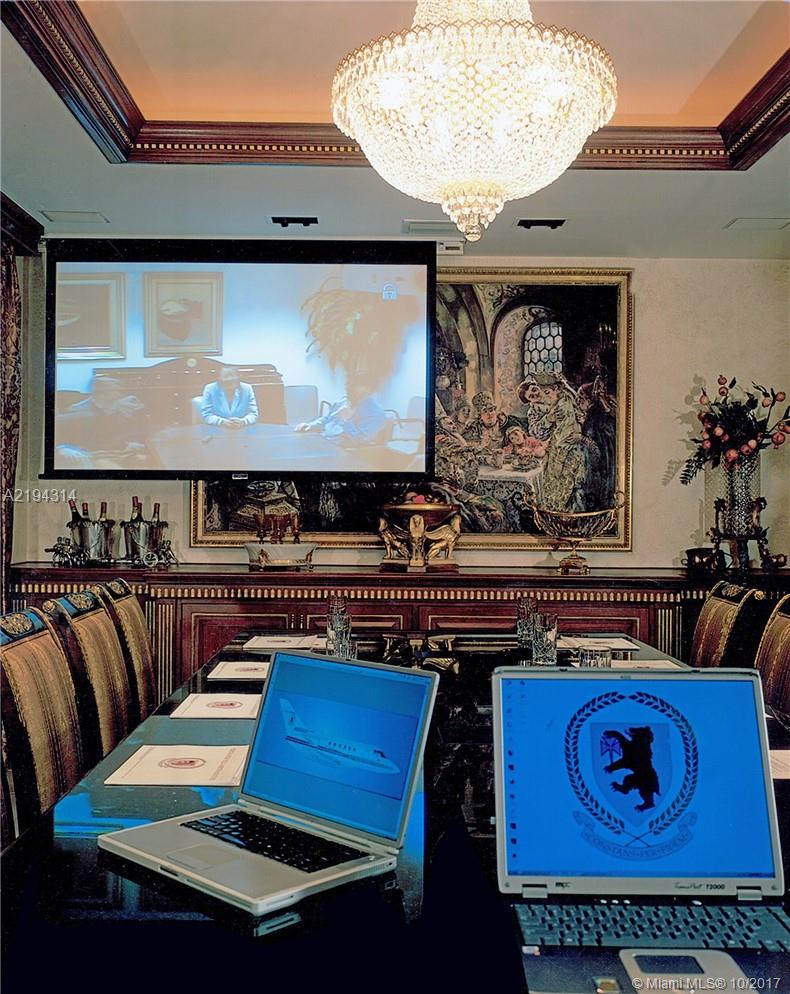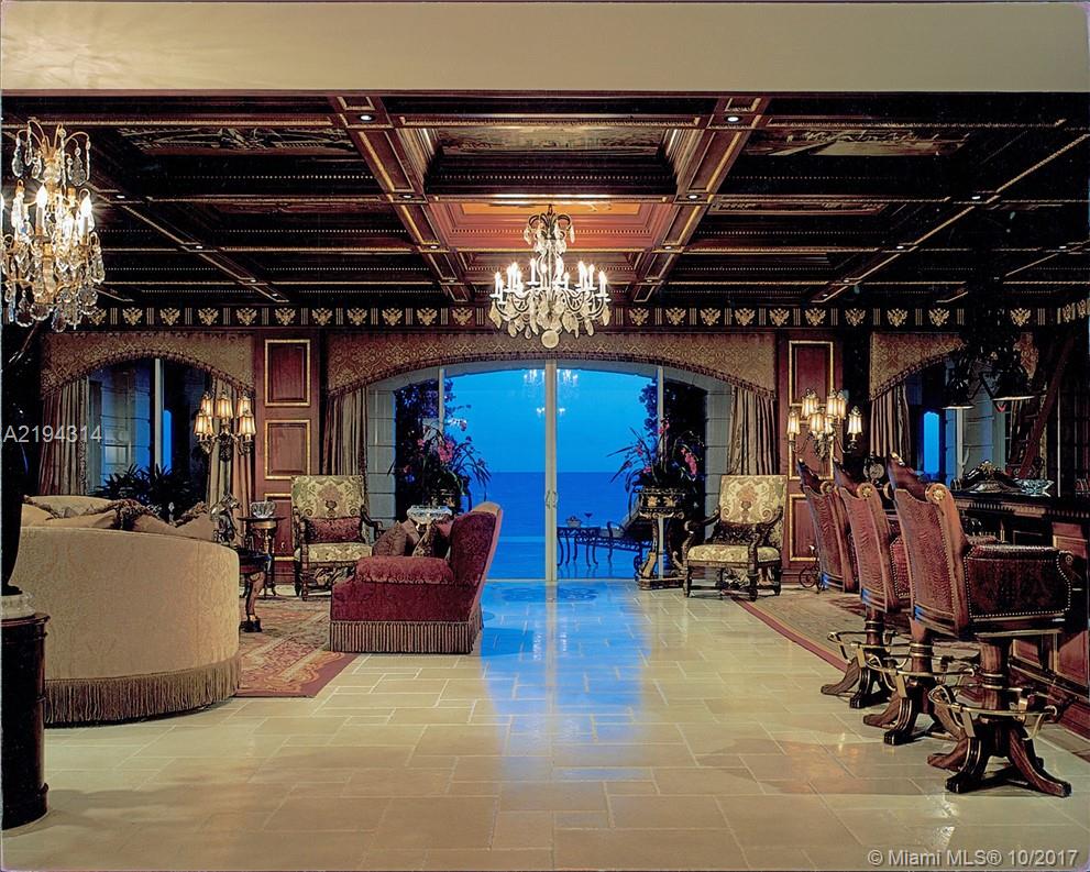 This spectacular ground floor center stack residence is a work of art. +/-7,696 SF of interior space w/expansive +/-5,300 SF terrace , private Infinity pool, Jerusalem stone floors flowing through the open living & family areas, custom bar, formal dining, Chef's kitchen w/top appliances and breakfast area. Hand painted wall & ceiling murals adorn this treasure throughout. Mesmerizing beach/ocean & Gov. Cut views. Maintenance fee is +/-$5,379.74 per month. FICA fee is $6,729.76 per quarter.