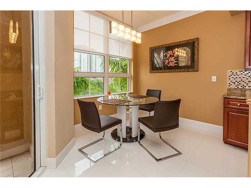 Highly upgraded split BR floorplan, including 24" porcelain tile flooring & crown molding throughout, upgraded marble in both bathrooms, 10' ceilings, Hunter Douglas shades, 2 terraces both finished w/ porcelain tile, very private & quiet side of building w/ tropical views. Both BR's have walk in closets (master has 3!), dining area plus breakfast area off kitchen. 2 parking spaces! Resort-like waterfront, guard gated complex w/ beautiful amenities (pool, gym, clubhouse, BBQ,dock avail., boardwalk, etc.)