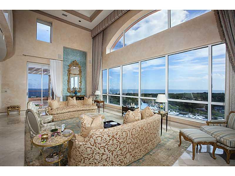 Enjoy panoramic views from your own palace in the sky! Luxurious Tower Suite with 10,190 sq. ft. spanning 2 floors. 6B/6FB/1HB & 6 terraces. Marble floors, Venetian plaster walls, crown moldings & custom built-ins throughout. Private elevator, generous sa lons w/ double high ceilings & walls of glass to entertain. Eat-in kitchen w/ top of line appliances. Media room & large library. Grand master bedroom w/ double high ceiling. 6 parking spaces and storage room.
