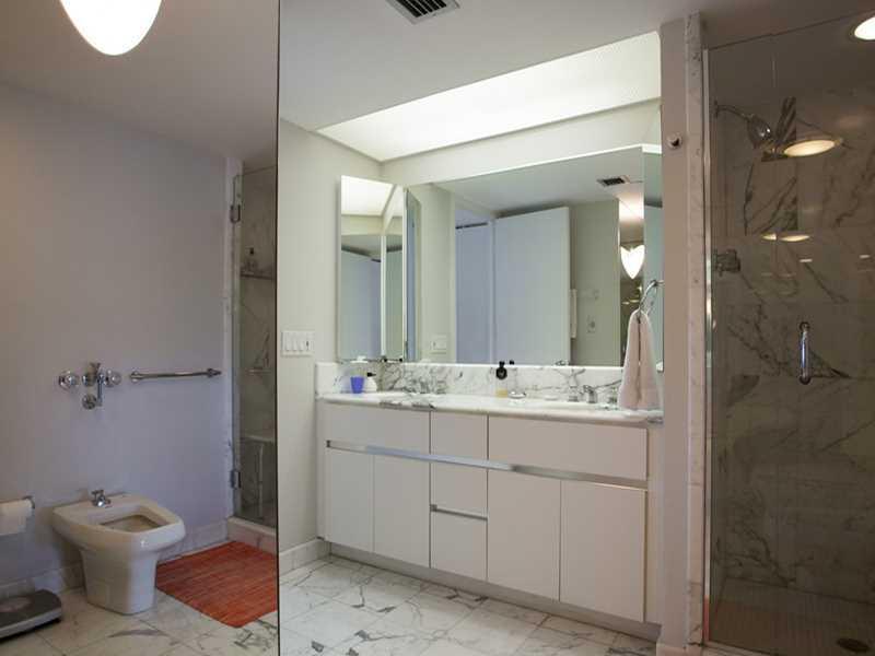 High floor corner unit with views of Govt Cut, Fisher Island, Miami skyline and South Beach. Unit was renovated and the wall between the living room and guest bedroom was replaced with sliding panels allowing for room flexibility. Master suite features w alk in closet, walk in shower, bidet and whirlpool tub. Wood floors throughout. Full service bldg with 2 pools, lighted tennis courts, 24 hr fitness center, media and business centers. Great South of Fifth location!