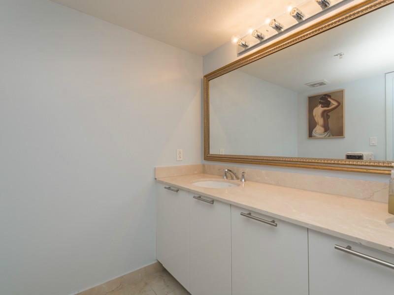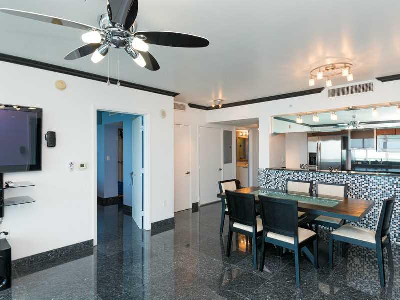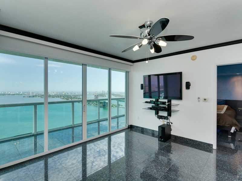 Magnificent corner 2/2 facing the bay and ocean. Sunrise every morning on your 240 sf terrace! Brilliant blue pearl granite throughout the living area and terrace with marble in the bathrooms. Thoroughly upgraded residence with luxurious finishes from top -to-bottom including sheer & black-out blinds, ceiling fans, crown molding, and built-out closets. Residence also comes with private storage unit on the same floor.