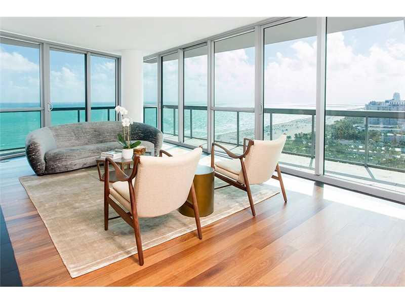 Spectacular from sunrise to sunset, enjoy Miami Beach direct oceanfront to downtown Miami skyline views from this turnkey fully furnished 3BR/3.5BA 2,558 SF home in the sky at the Forbes five-star Setai! Combines units 2308 and 2306, Setai's most sought a fter direct oceanfront and southeast facing units. Floor to ceiling impact windows, new top of the line appliances, beautiful hardwood flooring, and motorized window treatments. Designer furnished including sheets and towels, just bring your toothbrush!