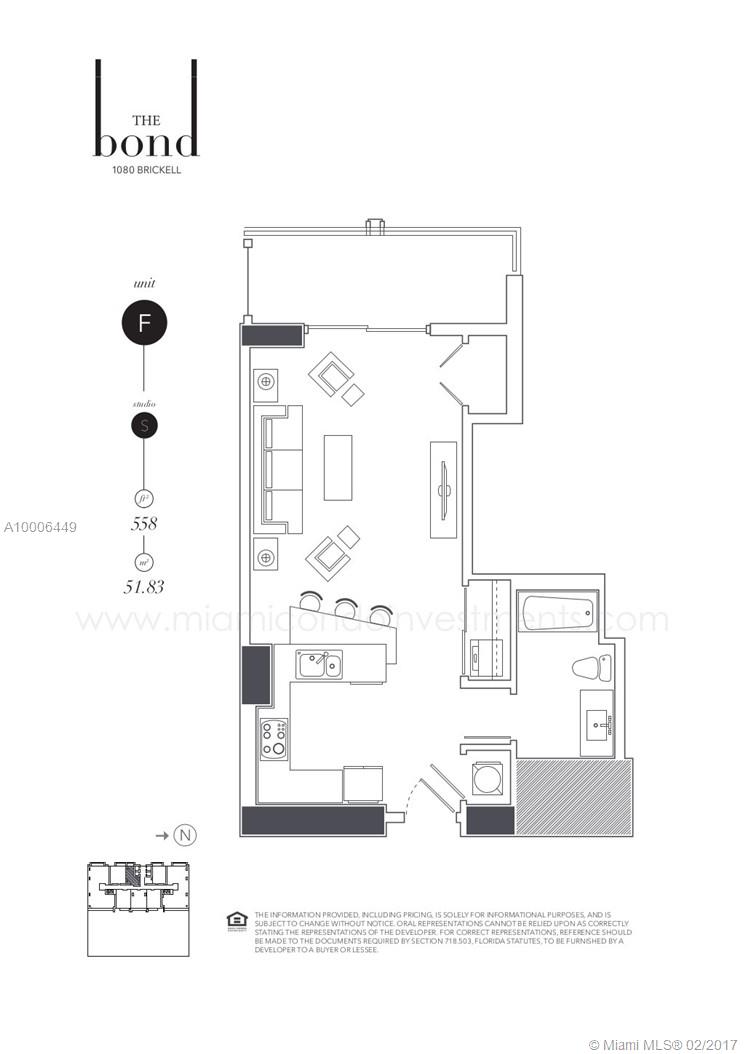 The Bond On Brickell is a luxury condominium at Brickell heart. Avenue financial district. Units are fully finished BUT DECORATOR READY FLOORS. with carpet floor, Bosch kitchen appliances, and Nolte cabinetry hand crafted in Germany. This studio features a functional split concept for added privacy. Amenities include Resort Pool, Cabanas, Library, and much more. Parking # 538 (11th floor)