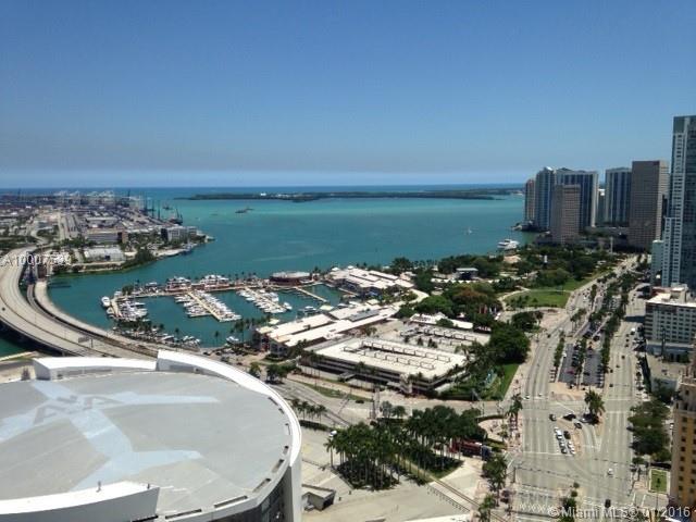 One of the most beautiful views in downtown! This 40th floor 1 bedroom 1.5 bathroom plus an enclosed den that can be used as a second bedroom or office, is very nicely updated with tile floors and elegant kitchen, SS Appliances. Vacation lifestyle with 2 pools, golf, volleyball. This unit has just been freshly painted and has new porcelain tile floors. Unit is empty and easy to see.