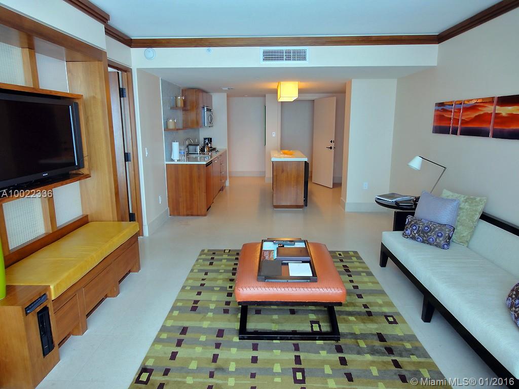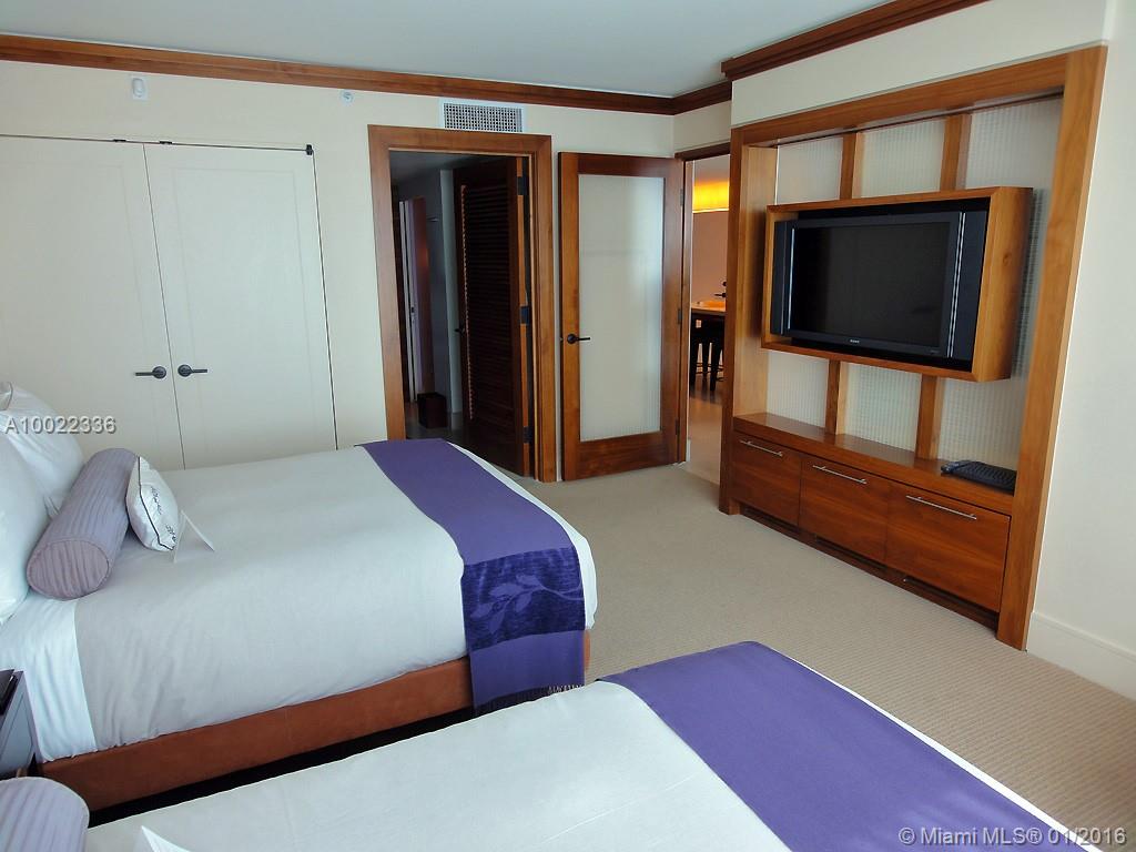CASH OFFERS ONLY. Wonderful corner and spacious unit. Fully-furnished "turn-key" 1BR hotel suite w/kitchen, bedroom with 2 beds, spacious bathroom. SW corner with city and partial pool/ocean view. 70,000 sf fitness/spa, 4 pools, salon, concierge, gourmet restaurant, pool side cafe, bar, 24hr security, valet, boutique, wellness staff, jog/bike beach path along beach. Owner's closet. Unit in hotel rental program and can only be shown when not rented to a guest. Door #902 / Deed #915. See photos.