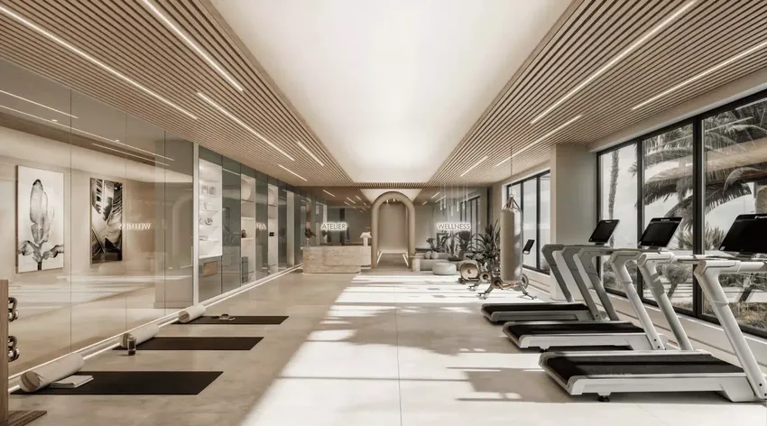 El diseño expresa una filosofía contemporánea de “urban wellness living”: líneas limpias, acristalamientos panorámicos y fachadas ligeras que reflejan la luz natural y generan una sensación de apertura.