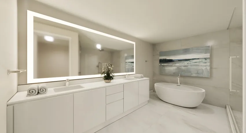 Cuentan con accesorios y acabados de alta calidad, bañeras exentas, duchas con vidrio de cerramiento, cabezales de lluvia y duchas de mano. Los vanities de estilo europeo y las superficies de cuarzo refuerzan aún más el carácter moderno de los interiores y la coherencia visual de todos los espacios privados.