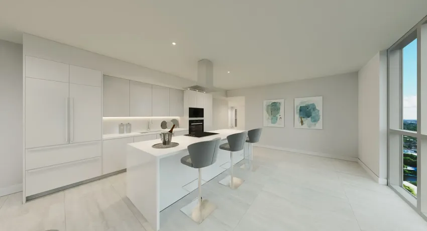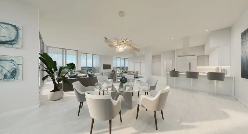La colección residencial de 3000 Waterside Fort Lauderdale ha sido diseñada en torno a la amplitud, la luz y el máximo aprovechamiento de las vistas. El proyecto incluye 103 residencias distribuidas en tres torres de 15 niveles, con 13 opciones de planos de planta, incluidos 7 penthouses.