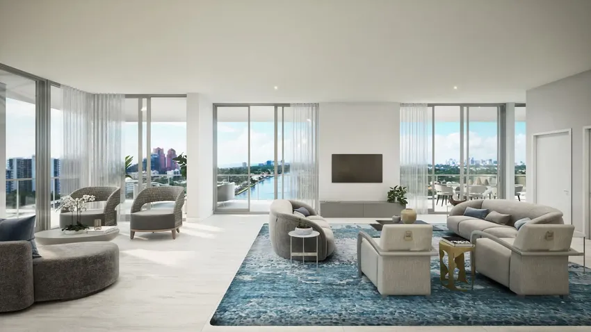 Las amplias terrazas privadas, enmarcadas de vidrio, crean una transición fluida entre los espacios interiores y exteriores, mientras que las vistas abarcan la Intracoastal Waterway, el océano Atlántico y el skyline de Fort Lauderdale. Este enfoque transforma cada residencia en algo más que una vivienda: la convierte en un entorno de vida donde el agua, la luz y los horizontes abiertos forman parte del día a día.